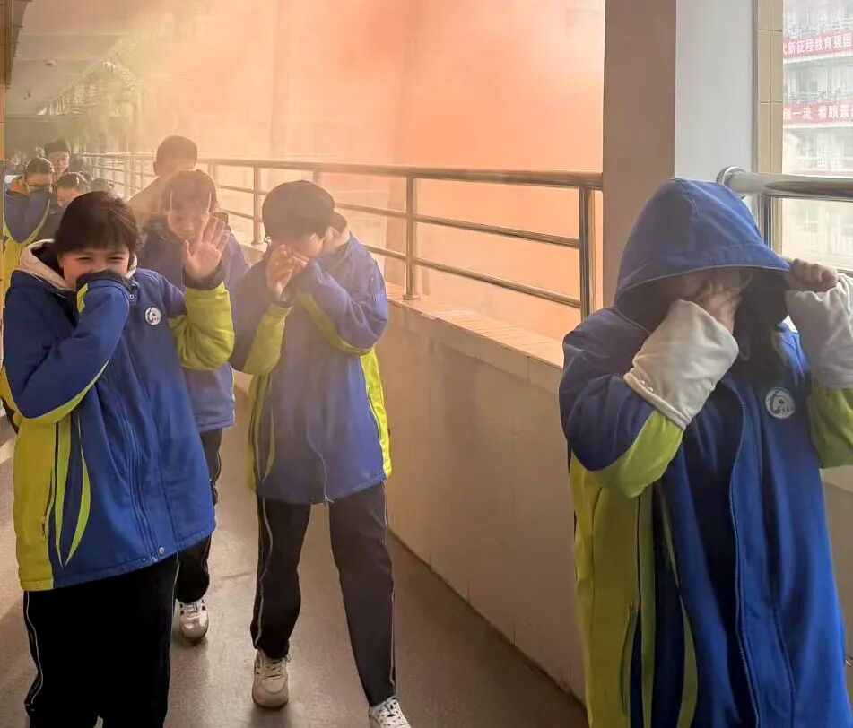 上午9时20分,急促的消防警报声在校园响起。政教科副主任李敏立即启动应急预案,全体教师迅速响应。班主任及安全岗教师按既定分工抵达指定位置,组织学生用湿毛巾捂住口鼻、弯腰沿疏散通道快速撤离。全校师生以班级为单位有序撤离至操场安全区域,经逐级清点确认,1600余名师生全部安全到达,全程仅用时3分50秒。