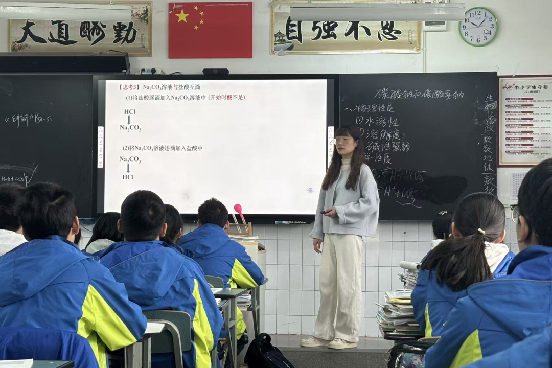 【向阳党建】AI 赋能破壁垒 课堂焕新展风采 | 草堂高中党员示范课系列⑤发表时间:2025-11-03 16:14 ![]() ![]() 近日,草堂高中化学组党员教师刘莲为全组教师展示了一堂内容为《碳酸钠和碳酸氢钠》的示范课。本堂化学示范课打破刻板印象,用 AI 技术、生活场景和直观实验,让化学知识生动好懂,获得了全组老师好评。 刘莲在科目开篇结合馒头、面包发酵,引出主角——碳酸钠和碳酸氢钠。这种导入既拉近学生与知识点的距离,也让大家明白:化学就在身边,生活现象皆有化学原理。为让学生更好地掌握实验相关知识,刘莲运用AI生成演示视频。该视频既直观展现往饱和碳酸钠中通二氧化碳的反应现象,又生成文字解说,详细解释了反应原理,帮助学生更好地理解实验本质。现场实验环节,老师准备两套装置:装有等量盐酸溶液的气球,分别套在两只加入等质量的碳酸钠和碳酸氢钠固体试管上端,同时将气球中的盐酸倒入试管。药品混合后,气球逐渐膨胀,差异很快显现——碳酸氢钠组气球膨胀更快,体积更大。“从气球膨胀速度和大小能直观看出,碳酸氢钠与酸反应速率更快、生成二氧化碳更多。” 老师边引导观察边讲解。抽象化学知识在趣味实验中一目了然。课堂接近尾声时,刘老师并没有简单总结知识点,而是抛出一个生活中的问题:“大家有没有想过,为什么治疗胃病的胃药里,很多成分是碳酸氢钠而不是碳酸钠呢?这个问题让学生们陷入思考,随后她引导学生结合本节课所学的性质差异作出了解释。将化学物质的性质差异与生活应用深度绑定,不仅是对本节课知识的巧妙总结,更让学生们明白化学知识的实用价值。 ![]() 课后,化学组进行了认真评课,大家一致认为:这堂课用AI打破传统教学局限,用生活实例拉近距离,用直观实验让化学 “活” 起来,这样的课堂,既让学生收获知识,更激发了对化学的兴趣, 是一堂不可多得的好课。 本次示范课不仅展现了刘莲老师扎实的教学功底,也为组内教师互学互鉴提供了良好平台。化学教研组将继续立足课堂,深化教学研究,在实践中不断追求教学质量的提升。 ![]() 供稿:龙林林 编辑:万 锋 审核:李 勇 审定:蒋 羽